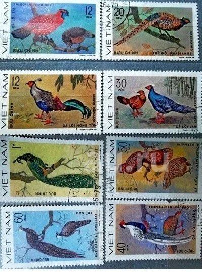 Марки - Фауна. Вьетнам. Серия - Птицы - Павлины (полная серия - 8 шт.) 1981 год.