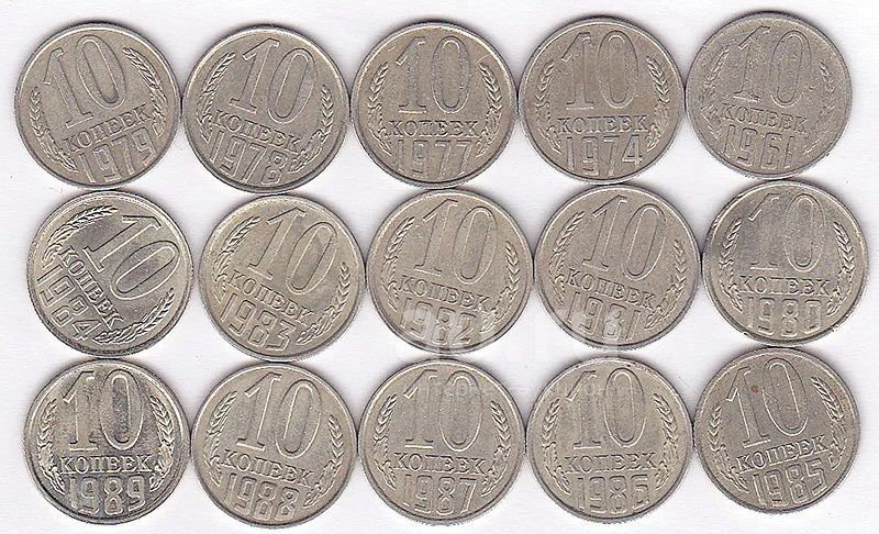 10 копеек 1961-89гг. погодовка 15шт. СССР (2)