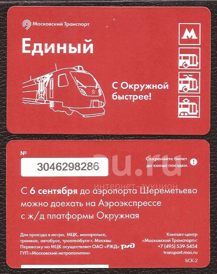 Единый билет / Московский транспорт / Тематический выпуск / Ограниченный тираж / «С Окружной быстрее».
