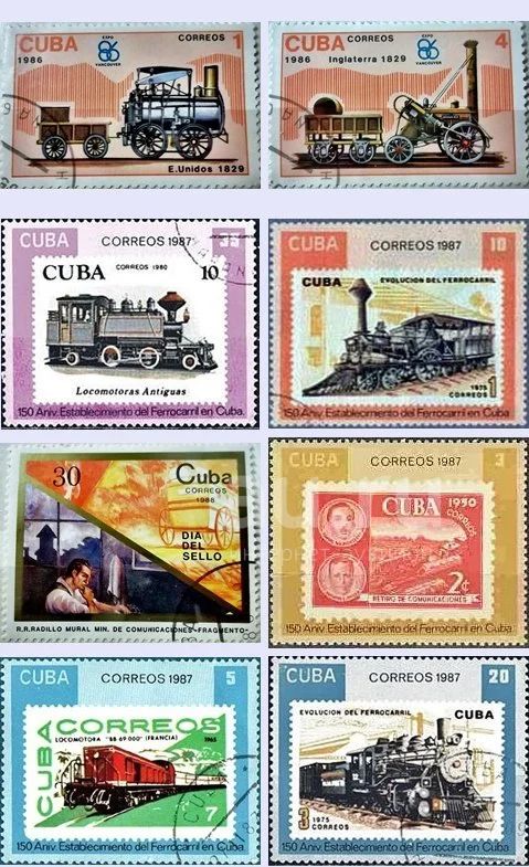 Марки Транспорт. Куба. 150-летие Кубинской железной дороги.1986-87 г.г. Серия из 8 марок.