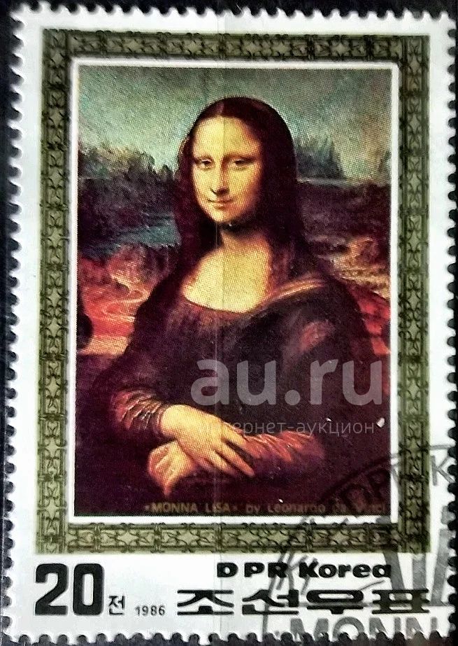 Марки Живопись. Северная Корея. Леонардо да Винчи. Мона Лиза. 1986 год.