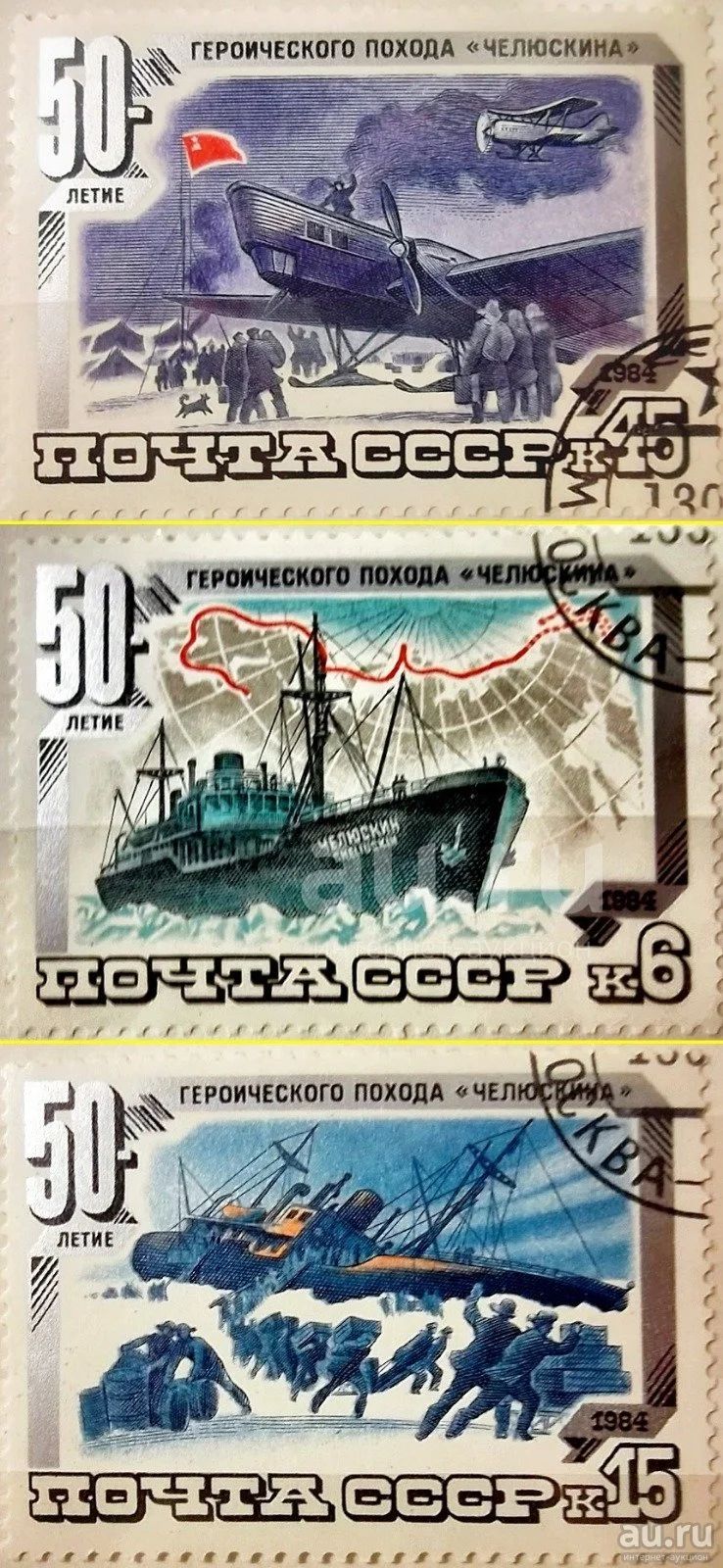 Марки •Юбилеи. СССР. 50-летие героического похода Челюскина. 1984 год. Полная серия.