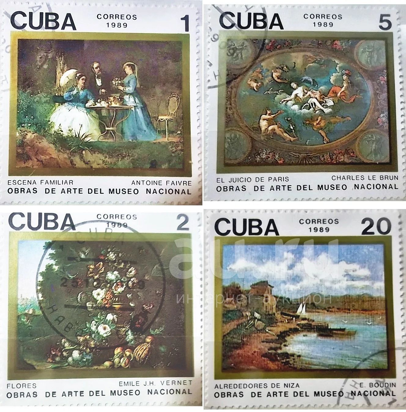 Марки Живопись. Куба. Картины Национального музея Гаваны.1989 год. 4 марки в серии.