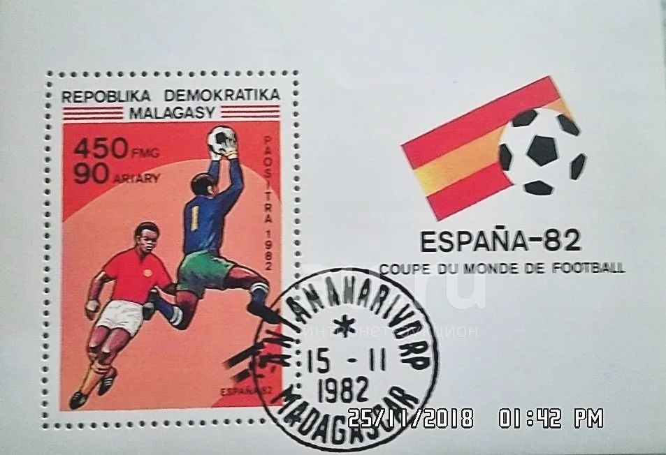 Марки Мадагаскар. Спорт. Футбол. Чемпионат мира Испания-82. Блок .