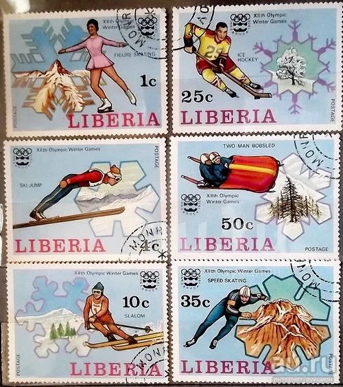 Марки Спорт. Либерия. Зимние Олимпийские игры в Инсбруке 1976 год. Полная серия 6 шт.