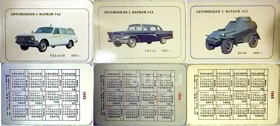 Календарик СССР 1989 Автомобили с маркой ГАЗ транспорт автомобиль (издательство "Горьковская правда", г. Горький, тираж - 500 000 штук) хорошее состояние. Цена за 1 шт.