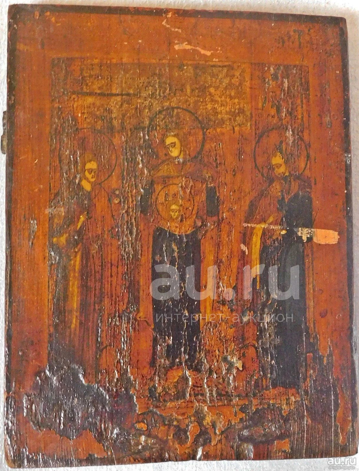 Икона Три Святителя: Василий Великий, Григорий Богослов, Иоанн Златоуст. 19 век. Оригинал.(под реставрацию).