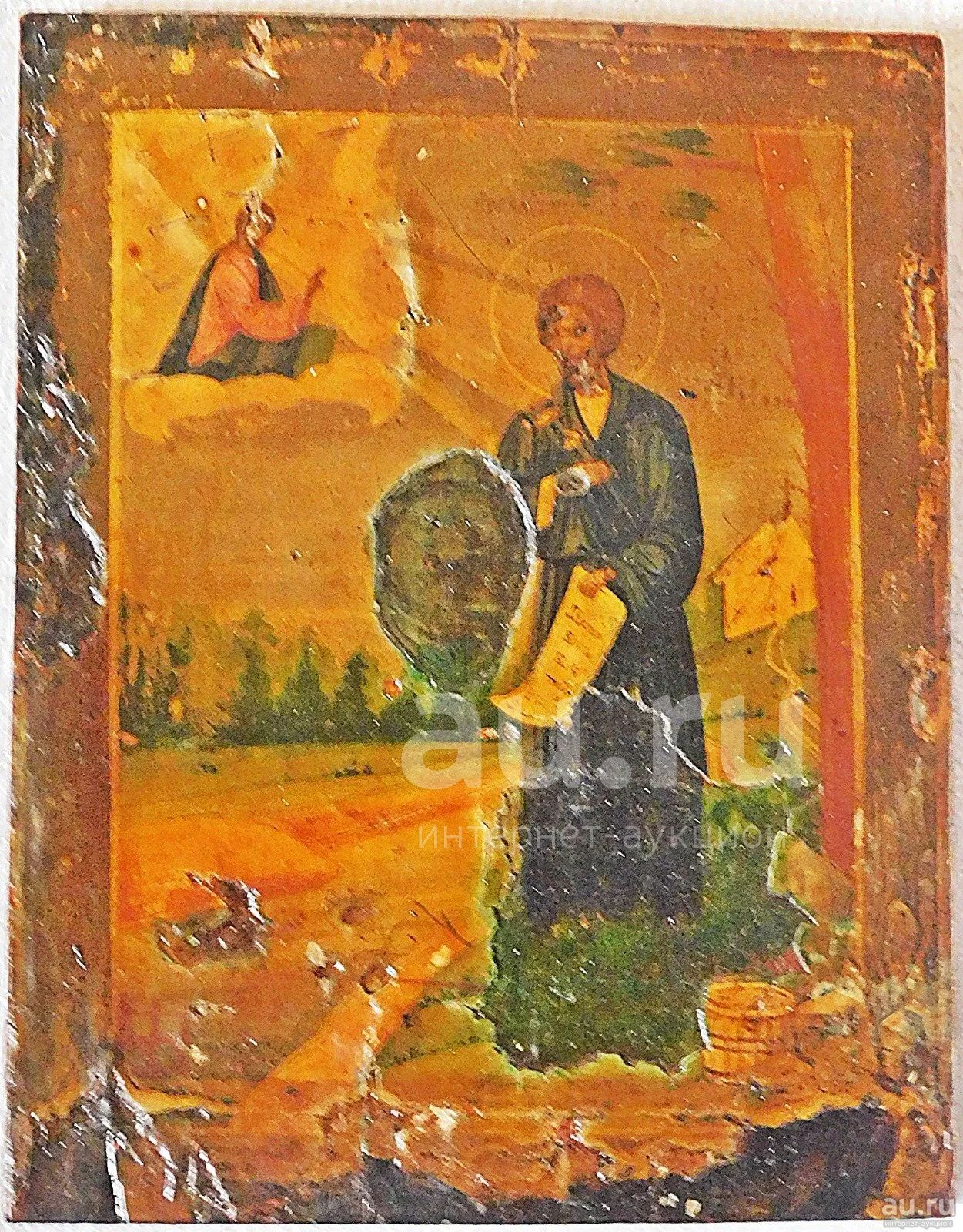 Икона Святой Праведный Симеон - покровитель Охотников и Рыболовов 19 в. Темперная живопись по левкасу 17,5 х 22 х 2 см.Оригинал. Под реставрацию.