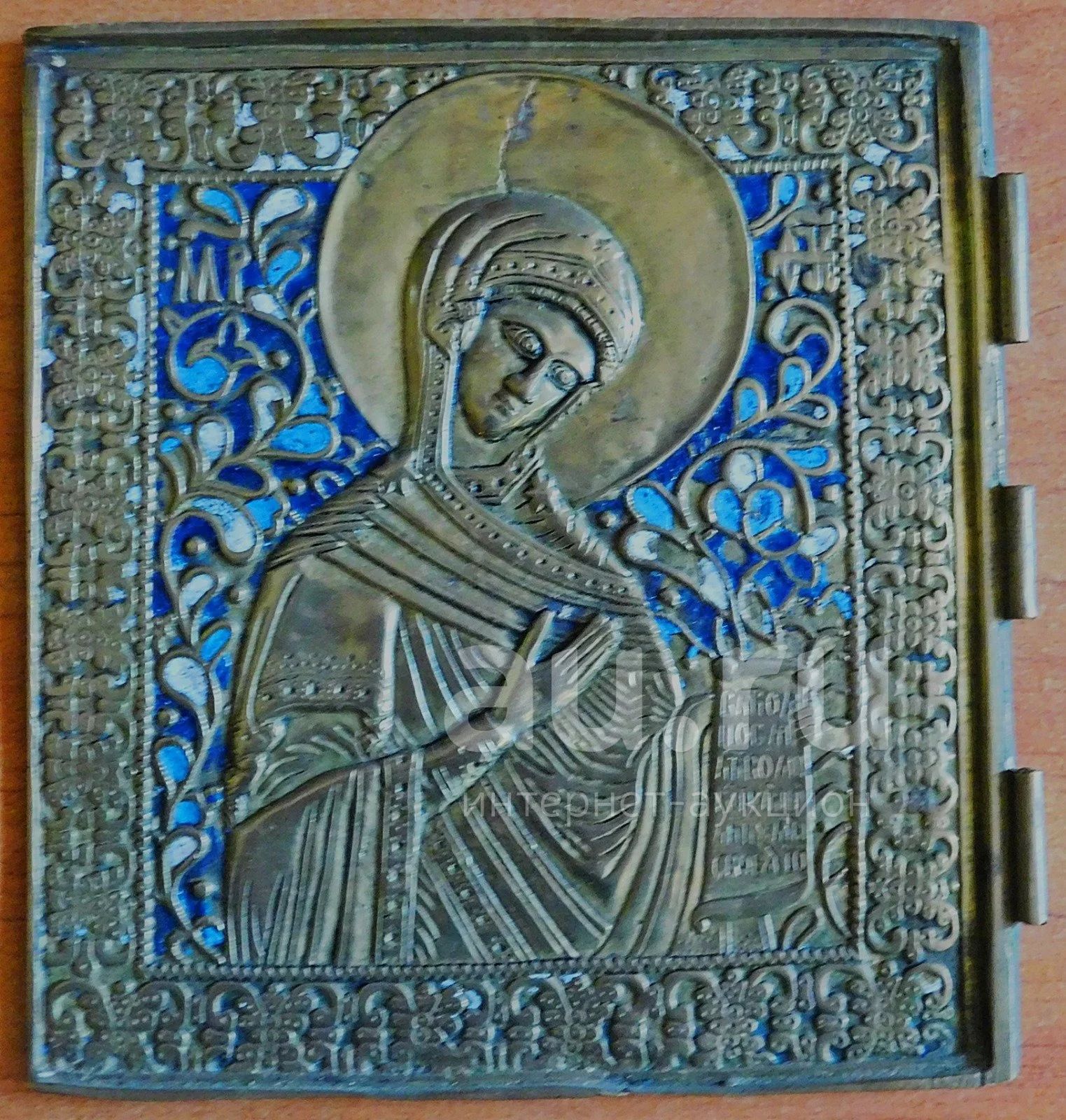 Левая часть складня Деисус. 19 век. Две эмали. Оригинал. Не новодел. Пластика, литье, бронза, . Россия. 18 век.