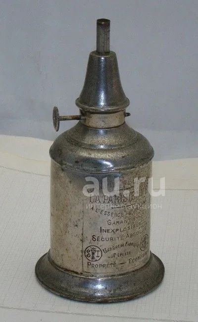 Медный сплав, никелировка. Высота со стеклом 17см. Франция. Дно утяжелено. Нет ручки, вмятины, сквозные трещины, фитиль не двигается, не смогли открутить горловину.