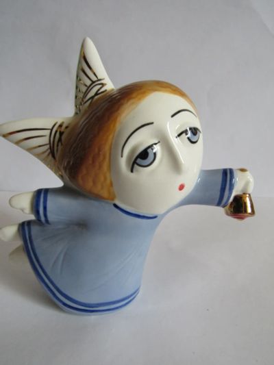 1 600руб.Ангел с рыбой -символ Христианства статуэтка авторская керамика новая