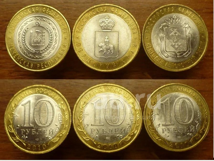 редкие монеты 2010 года Чечня,Пермский край и Ненецкий АО