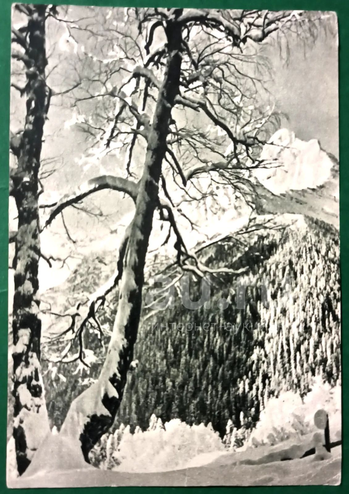 Открытка (почтовая карточка, открытое письмо, фотография). / Утро в горах. / Фотограф: Руйкович Виктор / Редактор Л. Строгонова. / Издательство: 15-я типография "Искра революции"; Изогиз. Москва. СССР. 1953 год.