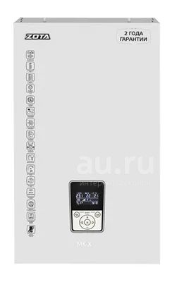 Электрический котел отопленияZOTA Зота MKX 15 это современное устройство, предназначенное для обеспечения эффективного отопления помещений. Он работает на электрической энергии и может использоваться как основной или дополнительный источник тепла. Котел имеет мощность 15 киловатта, что позволяет обогреть небольшие и средние помещения до 150 квадратных метров. Особенности и преимущества: миникотельная; от 3 до 9 ступеней мощности; информативный графический дисплей; система самодиагностики неисправностей с выводом кодов ошибок на экран и записью во внутреннюю память контроллера; управление по температуре теплоносителя и температуре воздуха; погодозависимое регулирование; управление циркуляционным насосам; управление приводом трехходового переключающего клапана ZOTA BPV, Fugas для организации работы контура ГВС; возможность самостоятельного обновления программного обеспечения; возможность подключения внешнего комнатного термостата по сухому контакту дистанционное управление котлом с мобильного телефона или персонального компьютера при помощи GSM GPRS WiFi или LAN модуля опция; дистанционное управление котлом по цифровой шине с использованием протокола OpenTherm; возможность подключения внешнего ИБП для питания цепей контроллера, насоса и клапана ZOTA BPV, Fugas. Электрические котелы отопления ZOTA MKX являются надежным и эффективным решением для обогрева помещений. Они сочетает в себе современные технологии, высокую функциональность и стильный дизайн. А также котлыобладают высокой экономичностью, что позволяет значительно снизить энергозатраты на отопление.