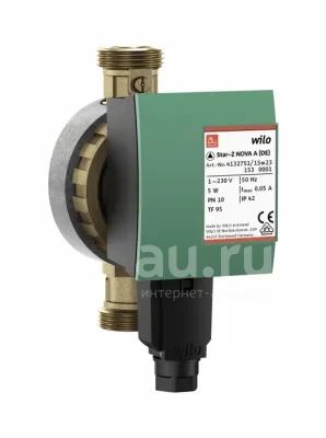Циркуляционные насосы Wilo Вило StarZ NOVA прекрасно подойдут для современных систем питьевого водоснабжения. Двигатель насоса надежно защищен от токов блокировки. Монтаж крайне прост. Установка производится вертикально. Корпус насоса выполнен из латуни. Двигатель работает бесшумно. Насос оснащен ротором мокрого типа. Напор данной модели составляет 0,86 м. Основные преимущества циркуляционного насоса для систем ГВС от немецкого бренда WILO: Чрезвычайно низкая потребляемая мощность: от 2 до 4,5 Вт благодаря новому синхронному мотору Высококачественные материалы: с рабочим колесом из нержавеющей стали. За счет этого обеспечивается высокий гигиенический стандарт, продолжительный срок службы и надежная защита от коррозии. Расширенная область применения при воде, содержащей известь: до 20 dH Универсальный запасной мотор: быстрая замена всех стандартных типов насосов Быстрое электроподключение посредством WiloConnector Исполнение A с шаровым запорным вентилем и обратным клапаном Исполнение C с шаровым запорным вентилем, обратным клапаном и штекерным таймером Корпус насоса: Латунь Рабочее колесо: Нержавеющая сталь Вал: Нержавеющая сталь Подшипники: Графит, пропитанный синтетической смолой Длительный срок бесперебойной эксплуатации. Для создания современных систем горячего водоснабжения инженеры немецкой компании WILO разработали серию циркуляционных насосов, способствующих стабильной, качественной и бесперебойной работе таких систем. Все модели семейства изготовлены из высокопрочных материалов, имеют поверхностный вариант установки, которая отличается простотой и минимальными затратами времени. Внедрение в конструкции агрегатов инновационной модели двигателей, позволило достичь невероятно скромного потребления электроэнергии, что делает насосы WILO экономичным и практичным приобретением. Страна: Германия; Производитель: Германия; Производ. лмин: 7; подключ., дюйм: 12; Монтажная длина, мм: 84; Мощность, Вт: 5; Напряжение сети, В: 220 В; Раб. давление, бар: 10; Режим работы: Авто; Max темп. жидкости, С: 70; Класс защиты: IP42; Качество воды: Чистая; Материал корпуса: Латунь; Тип ротора: Мокрый; Установка насоса: Универсальная; Габариты ВхШхГ, мм: 70x84x119; Вес, кг: 2; Гарантия: 1 год;