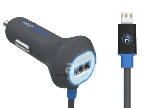 Зарядное устройство автомобильное Revocharge с разъемами lightning/USB 3,4A, серое