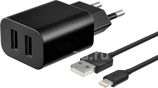 Зарядное устройство сетевое Deppa ULTRA Duo с разъемом Lightning 3.4A, черное