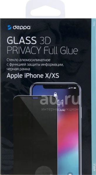 Защитное стекло Deppa Anti-Spy для Apple iPhone X/XS 3D Full Glue (черная рамка)