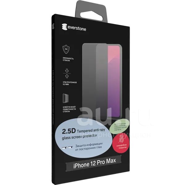 Защитное стекло Everstone для Apple iPhone 12 Pro Max Anti-Spy 2.5D Full Glue (черная рамка)