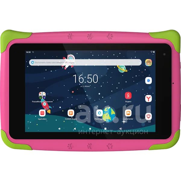 Wi-Fi; ОС Android; Дисплей сенсорный емкостный 16,7 млн цв. 7"; Камера 2 Mpix; GPS; Вес: 318 г.