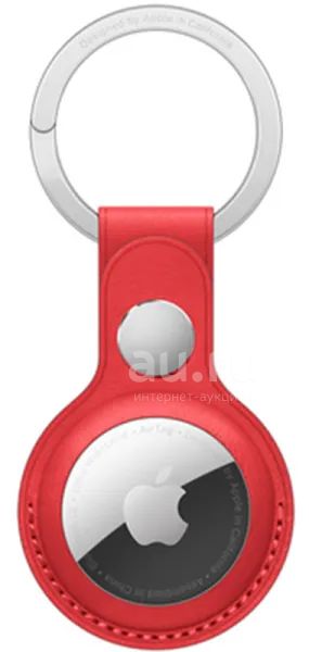 Браслет Apple AirTag, кожаный, красный, с кольцом для ключей (MK103)