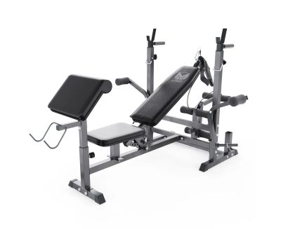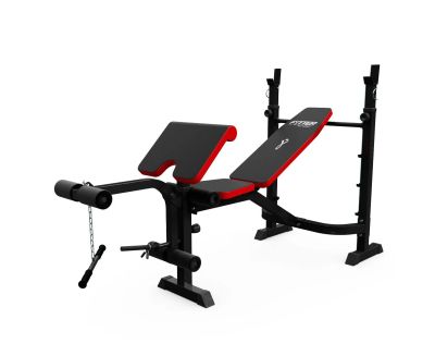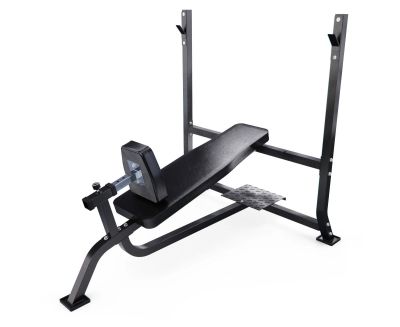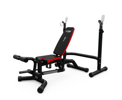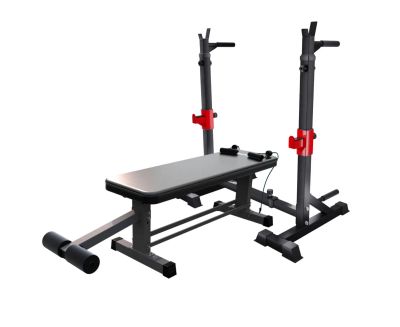 основная информация силовая скамья со стойками под штангу dfc homegym - домашний тренажер для выполнения силовых упражнений. особенности: предназначен для выполнения упражнений жим лежа со штангой (гриф и диски приобретаются отдельно). прямая скамья позволяет выполнять баттерфляй с гантелями для грудных мышц. так же возможно делать упражение подъем ног к туловищу, руками в качестве упора взяться за стойки. рама тренажера изготовлена из стального профиля. размеры профиля: 45*45 и 38*38, толщина 1,5 мм. дополнительные характеристики максимальная нагрузка 260 кгнагрузка на скамью до 160 кг нагрузка на стойки до 100 кг размер скамьи 83 х 38 х 4,5 см расстояние м/у стойками 50 см страна производства китай