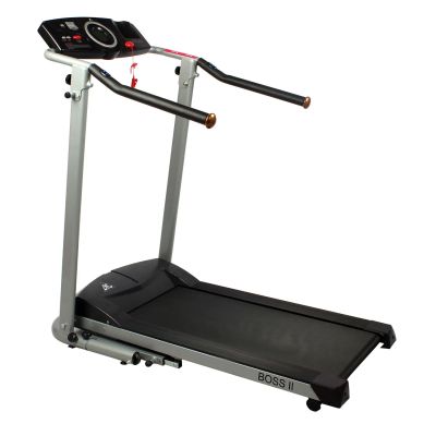 основная информация беговая дорожка dfc boss pro t-b pro разработана специально для бережных тренировок в восстановительный период. ее конструкция включает длинные обрезиненные рукоятки, длина которых равна длине всего тренажера. заниматься на такой беговой дорожке могут даже те, кто проходит курс реабилитации после травм опорно-двигательного аппарата. что еще характерно для модели dfc boss pro t-b pro? минимальная скорость движения бегового полотна у этого тренажера равна 0,6 км/ч. повышать скорость можно плавно - шагом в 0,1 км/ч. запустить электродвигатель можно при условии нахождения пользователя на беговой дорожке. для простоты перемещения тренажера предусмотрены специальные ролики. на рукоятках есть датчики, фиксирующие частоту сердечных сокращений. у модели dfc boss pro t-b pro предусмотрен ключ безопасности с клипсой, которая фиксируется на одежде пользователя. он нужен, чтобы быстро выключить тренажер в случае экстренной необходимости. модель dfc boss pro t-b pro поставляется в практически собранном виде. на полную сборку и подготовку тренажера к первому занятию уйдет всего несколько минут. в процессе вам не понадобится специальный инструмент - в комплекте к барашкам идут необходимые винты. амортизирующая система представлена шестью плоскими эластомерами, толщина каждого - 8,5 см. дополнительные характеристики система амортизации 6 плоских эластомера толщиной 8,5 мм дисплей большой lcd дисплей показания консоли скорость, расстояние, время, калории, пульс, температура язык интерфейса английский количество программ нет управление на поручнях регулировка скорости и start/off питание 220в