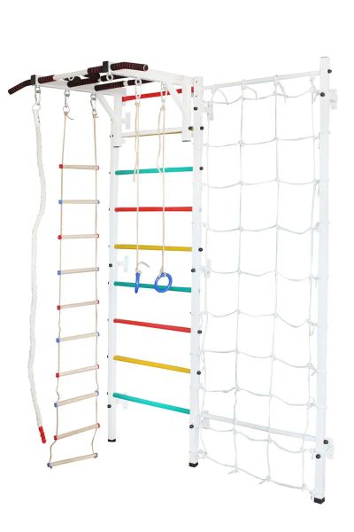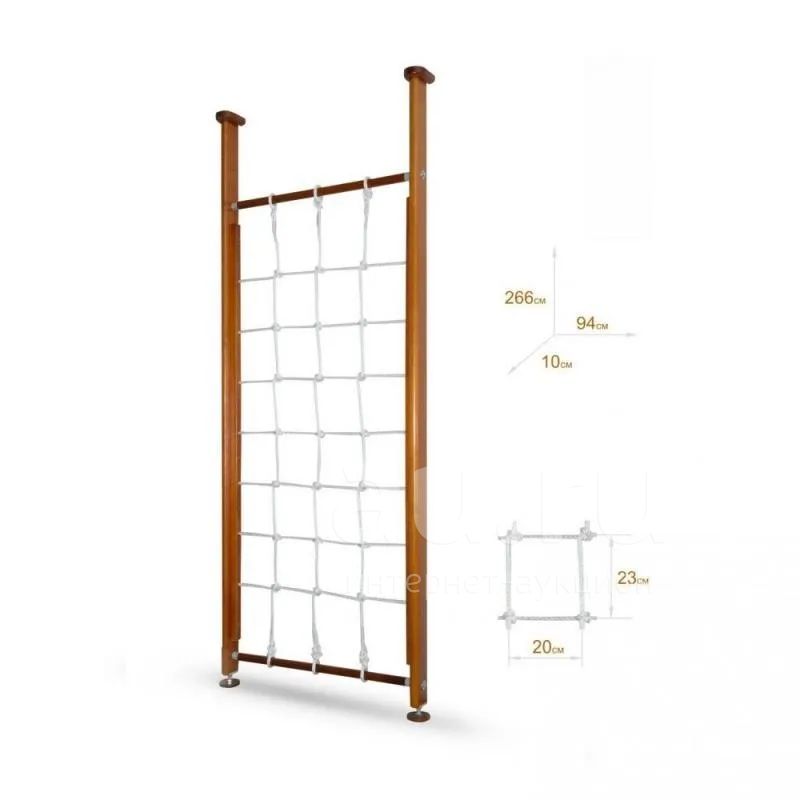 дополнительные характеристики способ установки: враспор между полом и потолком материал: дерево изготовлено: стойки – сосна, перекладины – береза высота: от 2,65 м до 2,70 м занимаемая площадь: 0,94 х 0,10 м комплектация: сеть-лазалка допустимая нагрузка: 120 кг возрастная категория: 3+ упаковка: картонная коробка и полиэтилен