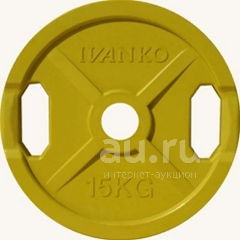 основная информация диск 15кг цветной обрезиненный, d51мм. диск: с двумя фигурными отверстиями (ручками) для хвата методом тиснения (прессования) нанесен логотип «ivanko» дополнительные характеристики состав металл, запрессованный в резину. цвет желтый. диаметр посадочного отверстия ?51 мм.