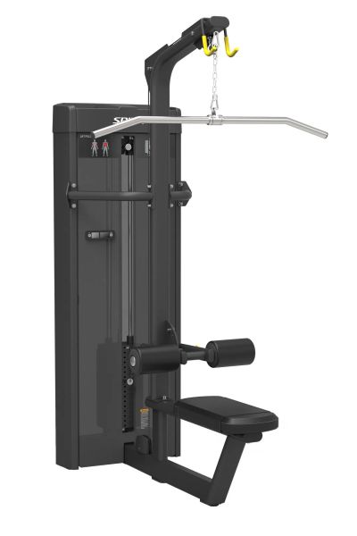 основная информация вертикальная тяга. особенности: регулировка высоты валиков для упора вес грузоблочного стека - 95 кг. грузоблочный стек состоит из металлических плиток оснащенных демпфирующими фланцевыми втулками, пронумерованными по весу, в количестве 20 штук. фиксатор нагрузки закреплен на гибком эластичном шнуре. грузоблочный привод осуществляется стальным тросом в нейлоновой оболочке, диаметром 6 мм., рассчитанным на нагрузку свыше 2 тонн. в местах перегиба троса установлены метало-керамические ролики на закрытых подшипниках - обеспечивающие безопасную и комфортную тренировку и увеличивающие рабочий ресурс тренажера. наличие одностороннего декоративно - защитного кожуха грузоблока с внешней стороны. удобные и безопасные регулировки осуществляются фиксаторами с полуавтоматическим возвратным механизмом. мягкие части, на базе ппу повышенной плотности, с обивочным покрытием из винилискожи на тканевой основе. информационная табличка с инструкцией по выполнению упражнения и нагружаемых мышц. опорные-декоративные подпятники пластиковые, способствуют устойчивости, анти-скольжению, а также предохраняют напольное покрытие от повреждений дополнительные характеристики конструкция тренажера из стального профиля с элементами гнутой формы, размером 70х50 мм. толщиной стенки 3 мм. покраска методом высокотемпературной технологии - порошковой жаростойкой эмалью с двойным электростатическим напылением. базовый цвет рамы: темно-серый базовый цвет обивочного покрытия: черный гарантии: рама и сварные конструкции 10 лет пошипники, подвижные узлы и конструкции 1 год мягкие части (сидения и спинки) 1 год покрытие рукояток и вспомогательных элементов 1 год