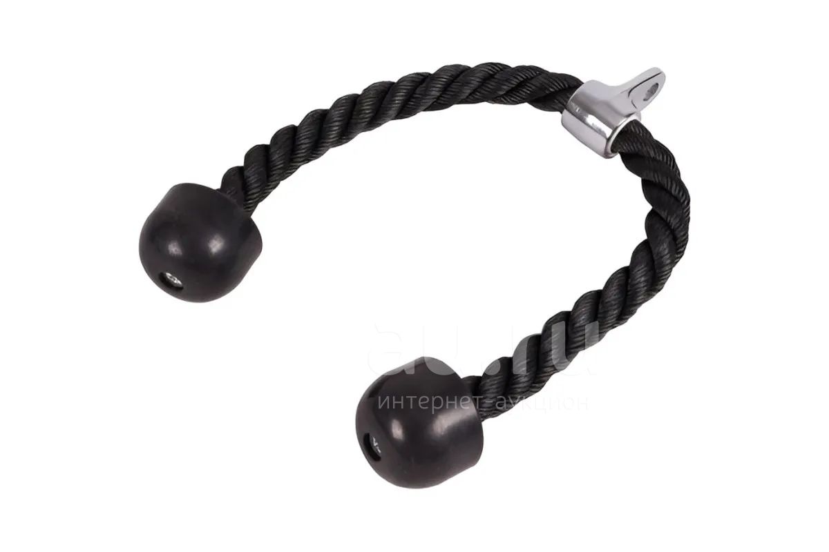 основная информация гибкая тяга-канат для трицепса блочная ручка мягкая тяга - канат витой канат с шарообразными наконечниками и петлёй для крепления троса предназнячен для работы на блочных тренажерах необходим для эффективного тренинга мышц плечевого пояса, рук, спины. дополнительные характеристики материал: нейлон, pvc (пвх), хромированная сталь диаметр каната: 27 мм. длина грифа: 93 см. максимальная нагрузка на гриф: 150 кг. вид конструкции : неразборная, цельная цвет: черный произведено в кнр