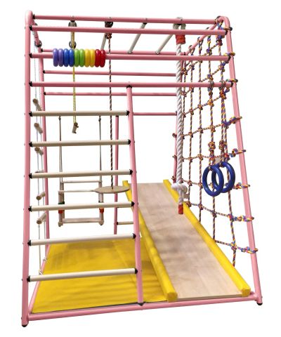Детский спортивный комплекс Вертикаль Веселый Малыш MAXI горка мягкий бортик, розовый