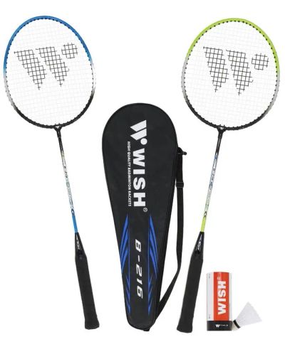 основная информация набор ракеток для бадминтона alumtec 502 бренда wish состоит из двух ракеток овальной формы, двух пвх-воланов и специального чехла для хранения и переноски. набор разработан для бадминтонистов-любителей, которым требуется долговечная и стабильная в игре ракетка. узкий алюминиевый обод в сочетании с новейшими технологиями виброгашения обеспечивает уверенную и комфортную игру благодаря снижению сопротивления воздуха. дополнительные характеристики материал обода: алюминийматериал рукоятки: стальдлина ракетки, см: 66,5ширина обода, мм: 12диаметр рукоятки, мм: 7размер рукоятки: 3вес ракетки, г: 105натяжение струн: 18-20 кгсцвет: синий/желтый комплектация: 2 ракетки, 2 пвх-волана, чехол