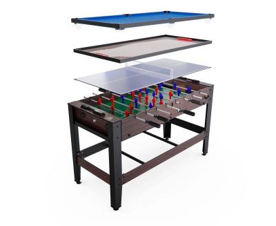 основная информация представляем вам уникальный стол unix line трансформер 4 в 1, 125х63 cм, который объединяет четыре популярных игры в одном компактном и стильном дизайне! этот стол - идеальное решение для всех любителей хоккея, бильярда и настольного тенниса. вы можете менять 3 поля и играть в разные игры. стол трансформер предлагает вам насладиться игрой в хоккей. ощутите адреналин и динамичность этих игр, пытаясь забить шайбу в ворота противника. быстрые движения, точность и реакция - все это станет вашими лучшими помощниками в достижении победы. в комплекте идут 2 биты и 2 шайбы, а также 2 клюшки и 2 шайбы для игры в хоккей. также на столе можно играть в настольный мини бильярд. он не только развлекает, но и развивает навыки стратегического мышления, точности и координации движений. бильярд - это отличный способ провести время с друзьями и семьей, создавая незабываемые моменты и конкуренцию. к полю мини бильярда в комплекте идут 2 деревянных кия и шары. и наконец, стол трансформер может быть использован для игры в пинг-понг. отточите свои навыки и технику, соревнуясь с семьей и друзьями. настольный теннис - это игра, которая развивает координацию, реакцию и концентрацию, со столом трансформером вы сможете наслаждаться игрой в любое время. в комплекте идут 2 ракетки, сетка и шарик для игры. к каждому из 3 полей в комплекте идут необходимые аксессуары для игры, чтобы вы сразу могли насладиться новым универсальным столом трансформером! стол трансформер обладает прочной конструкцией, которая обеспечивает стабильность и долговечность. компактные размеры и легкость в установке столов позволяют вам легко менять поля и наслаждаться разными играми дома или в офисе. складная конструкция игрового стола трансформера позволит перемещать его по комнате или брать с собой на пикник или в поездку. будьте готовы к бесконечным часам веселья и развлечений! дополнительные характеристики тип игры настольный теннис, хоккей, пул материал игрового поля мдф с ламинацией, фланель материал корпуса ламинированный мдф, пластик материал ножек ламинированный мдф, металл сертификаты ce, rohs страна изготовления кнр аксессуары в комплекте: 2 кия, шары, треугольник, мел, 2 биты, 2 шайбы, 2 клюшки, 2 шайбы, 2 ракетки, 2 шарика, сетка