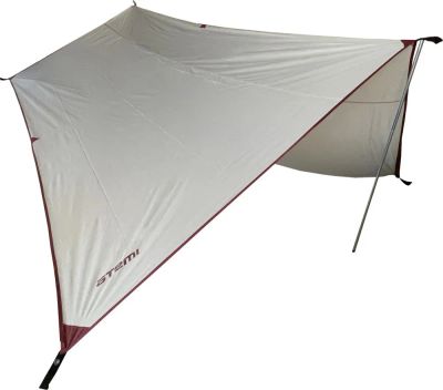 дополнительные характеристики швы: проклеенные швы материал: полиэстер 2000 мм в.ст углы: прошиты и усилены. размер: 3?3 м комлектация: чехол для переноски и хранения, колышки, штормовые оттяжки светоотражающие.