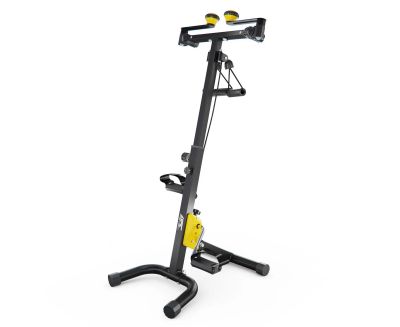 основная информация педальный велотренажер dual bike для рук и ног чёрного цвета. уникальная конструкция разработана специально для реабилитации, и в дальнейшем адаптирована для людей с различной физической подготовкой. рекомендуется для занятий пожилым людям, и в качестве реабилитационного оборудования. занятия на тренажере помогают улучшить кровообращение и координацию движения, сжигается жир, мышцы приводятся в тонус. стойка велотренажера с регулировкой позволяет установить оптимальную высоту верхних педалей для удобства занятий людям разной комплекции. педали для ног оборудованы резиновыми ремешками. занятия на тренажеры выполняются сидя на стуле, кресле и любимом диване. необходимую нагрузку (сопротивление) педалей можно отрегулировать отдельно для рук и для ног с помощью удобной пластиковой ручки. на тренажере установлен компьютер, отображающий всю необходимую во время тренировки информацию: время, расстояние, сканирование, количество оборотов, общее количество оборотов, калории. тренажер в основании имеет 4 резиновые ножки, что позволяет полностью исключить его смещение на полу во время занятий. дополнительные характеристики дисплей монохромный система нагрузки трубочная количество уровней нагрузки бесступенчатая система регулировка нагрузки механическая диапазон регулировки по высоте 5 уровней педальный узел однокомпонентный шатун складная модель нет цвет чёрный показатели консоли: время расстояние сканирование количество оборотов общее количество оборотов калории