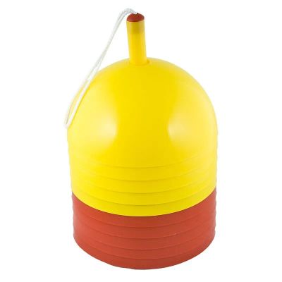 основная информация фишки для разметки поля. форма усеченных конусов. комплект из 50 штук 5 цветов: синие, белые, оранжевые, желтые, красные. высота фишки 5 см, диаметр 19,5 см, располагаются фишки на пластиковой подставке без стопора. изготовлены из мягкого пластика. индивидуальная упаковка - пластиковая сетка. дополнительные характеристики материал пластик уровень тренировочный