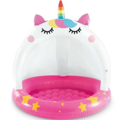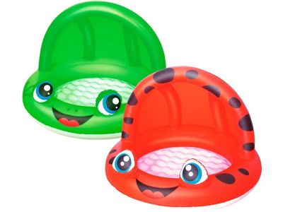 основная информация детский надувной бассейн с навесом- отличный выбор летнего бассейна для маленького ребенка. забавная форма бассейна в виде яркого большого ананаса обязательно понравится ребенку. навес прикроет от яркого солнца, надувное дно и низкие стенки сделает игры в бассейне безопасными. дополнительные характеристики размер: 102х94см уровень воды: 37 см материал: винил объем: 45 литров при наполнении на 80%. возраст: 1-3 года цвет: желтый