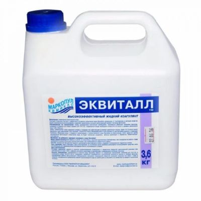 эквиталл является высокоэффективным коагулянтом. поставляется в картриджных таблетках. средство быстро и максимально эффективно борется с загрязнениями и помутнением воды в водоемах независимо от температуры, а также используемых методов ухода за водой. эквиталл экономичен в использовании, позволяет существенно улучшить фильтрующий эффект песочных фильтр-насосов не прибегая к большому расходу средства. коагуляция относится к реагентному методу улучшения качества воды. очистка воды от посторонних микро-взвесей осуществляется с помощью специальных веществ-коагулянтов, которые экологически безопасны и безвредны для человека, но действенны против загрязнений. обычные фильтры (картриджные, песчаные и т.п.) служат для удаления загрязняющих частиц только определенного размера, коагулянт же способны осаждать частицы размером до 0.07 микрон, которые не в силах задерживаться в фильтре. принцип действия прост: при добавлении в скиммер препарат обволакивает и связывает частицы грязи в воде, образуя хлопья достаточно большого размера, которые уже удаляются фильтрами на этапе прогона воды. эквиталл - коагулянт, созданный на основе полиоксихлорида алюминия, обладает ячеистой quot;изломанной quot; структурой, что позволяет в сжатые сроки: от трех до двенадцати часов осаждать любые посторонние примеси и взвеси (в том числе образовавшиеся и после борьбы с водорослями). обращаем внимание, что прозрачность и чистота воды бассейна зависят от следующих важных показателей: - значения рн 7.0-7.4 - значения свободного хлора 0.3-0.5 мг/л; - непрерывной работы фильтрующего устройства и регулярно проводимой обратной промывки фильтра. применение:после тщательной обратной промывки фильтра необходимое количество картриджей поместить в префильтр или скиммер, затем включить фильтр в режим фильтрации. после полного растворения таблеток картриджи утилизируются. дозировка: 1 картридж на 10-50м3 воды каждые 7-10 слой хлопьев со дна бассейна удаляют с помощью пылесоса, включают вентиль насоса бассейна на промывку. внимание: запрещено добавлять препарат напрямую в воду бассейна, только через скиммер!состав: алюминия полиоксихлорид;