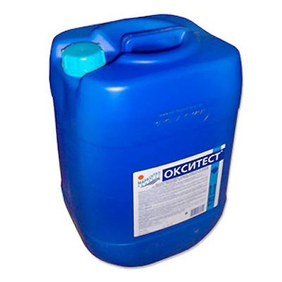 окситест используется для бесхлорной дезинфекции воды на основе активного кислорода. легко, быстро и надежно придаст чистоту воде, является высокоэффективным обеззараживающими препаратом. жидкий quot;окситест quot; особенно эффективен для обработки мутной и цветущей воды, обусловленной органическими частицами и ростом водорослей. сила воздействия повышается при использовании совместно с quot;окситест quot;-порошком. может использоваться в сочетании с другими системами обработки воды, основанными на активном кислороде. применениепри отсутствии автоматической системы дозирования, препарат может использоваться и в режиме ручного дозирования. для этого необходимо понизить исходную концентрацию в три-пять раз. полученный рабочий раствор добавить непосредственно в бассейн, вблизи места подачи воды. при интенсивном использовании бассейна следует увеличить дозировку до 2 л на 10 куб м воды в сочетании с необходимой дозой порошка окситест. ркомендуемые дозировки:- текущая обработка -0,5 л на 10 куб м воды.- quot;ударная quot; обработка -. 1 л на 10 куб м воды. требуется технический перерыв в работе бассейна не менее 12 часов.состав: содержит 35% пероксида водорода, четвертичные соединения аммония.
