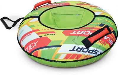 основная информация материал: верх – ткань oxford 500d с ярким принтом дно – автотент пвх 610 преимущества: усиленное дно все швы усилены капроновой лентой светоотражающие элементы крепкие эргономичные ручки защитный внутренний клапан с потайной молнией буксировочный ремень устойчивый к морозам материал до -28?с камера в комплекте диаметр: чехол – 770мм тюбинг в накачанном виде – 700мм