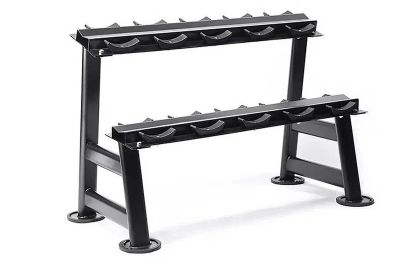 основная информация стойка для гантелей (на 5 пар) 2215-5 dhz предназначена для хранения и удобного использования круглых гантелей. представляет собой сборную металлическую конструкцию с двумя полками и ложементами под гантели. чашеобразные гнёзда под гантели изготовлены из прочного пластика, обеспечивающего надежную фиксацию и безопасность при использовании оборудования. подходит для хранения гантельных рядов professional и power. дополнительные характеристики основа: профиль 100?50?3 мм цвет: графит макс. нагрузка: 360 кг особенности: длина рукояти гантели для размещения от 120 до 160 мм