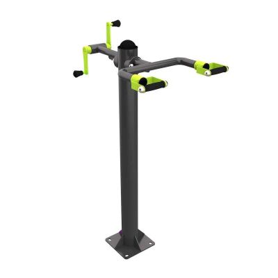 основная информация конструктивно тренажёр состоит из рамы-столба с креплением узла с ограниченным вращением, рычаг-сиденья, рычага, связывающего рычаг-ручку и рычаг-сиденье, и рычага-ручки подвешенного на раму через узел вращения. за счёт применения специально разработанных узлов с ограничением вращения, в конструкции отсутствуют открытые отбойные элементы, что ведёт к уменьшению травмоопасности и исключает любое соударение частей тренажёра. тренажер состоит из следующих основных элементов: рама-столб; рычаг; рычаг-сиденье; рычаг-ручка; закладная дополнительные характеристики цвет рамы: графит (другие цвета-опционально) цвет: pantone 382c (другие цвета-опционально) материал: металл основа: закладная профиль: 114*4 мм особенности: возможен монтаж на цельной трубе