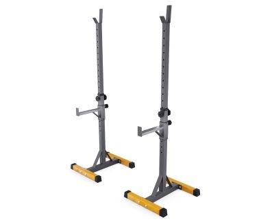 основная информация стойки регулируемые для штанги. упражнения со штангой на стойке обеспечат формирование рельефа мускулатуры в короткий срок. 5 необходимых условий правильной стойки для штанги: телескопический механизм. конструкция выдвигается на разную высоту от 800 до 1500 мм с небольшим шагом в 5 сантиметров. положение жёстко и безопасно фиксируется. телескопический механизм позволяет отрегулировать высоту стойки под рост атлета, длину рук и под тип упражнения. подстройка ширины снаряда. этот механизм делает возможным использование грифов различной длины и формы, от коротких до w-образных и длинных олимпийских. прочность и устойчивость. в конструкции применяется стальной профиль прямоугольного сечения. нагрузка на стойку велика, порой трудно избежать случайных ударов штангой о конструкцию. устойчивость – важная характеристика стойки. нельзя допустить падения станка – это просто опасно. безопасность. снаряд от авторитетной фирмы непременно оборудован страховочными упорами, особенно полезными при жиме лёжа. если невозможно дожать груз до верхнего положения, можно быстро сбросить его на упоры. можно ли заниматься на такой стойке в одиночку, без партнёра или тренера? да, можно, но только при наличии достаточного опыта в силовых упражнениях с нагрузкой. высокая нагрузка. советуем не экономить и выбрать стойку для штанги под максимальную нагрузку. сегодня вы занимаетесь с небольшим весом, но через год вы достигнете такой формы, при которой вес потребуется удвоить или утроить. универсальность оборудования имеет дополнительный бонус: в минимальной позиции они занимают мало места. в стандартной квартире или тесном спортзале габариты снаряда играют не последнюю роль.