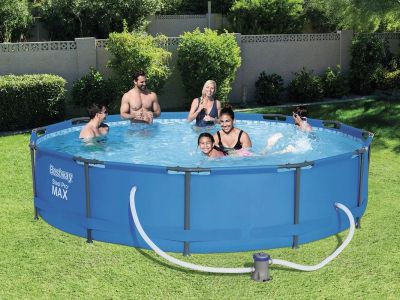 основная информация каркасный бассейн bestway 56411 отличается высокой прочностью и устойчивостью. чаша выполнена из высококачественного трехслойного пвх: два слоя плотного винила и один - полиэстер для особой прочности. каркас металлический нержавеющий оцинкованный.не требует бетонирования и подготовки ямы, все, что нужно, это плоская, горизонтальная площадка. сезонный бассейн (рекомендуется разбирать на холодное время года) обладает простой конструкцией - может быть легко разобран и собран заново. время сборки и подключения бассейна не более часа.удобный сливной клапан позволяет присоединить садовый шланг, что дает возможность слить воду в любое место. дополнительные характеристики бассейн фильтрационный насос для бассейнов bestway #58381 ремкомплект инструкция