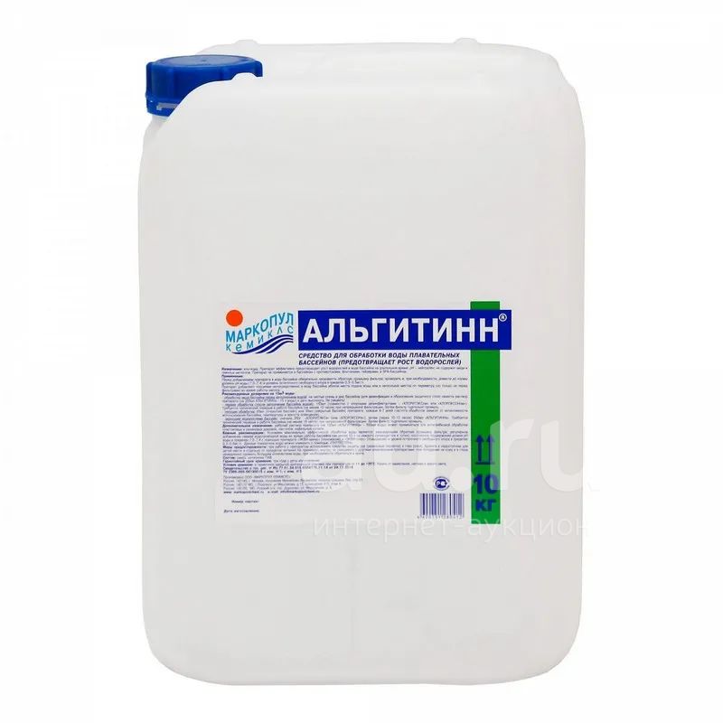 основная информация жидкое средство от водорослейпрепарат рн - нейтрален; не содержит хлора и тяжелых металлов; с пониженным пенообразованием, добавляют с помощью мерника или автоматического дозирующего устройства непосредственно в плавательный бассейн около места подачи воды при работающем циркуляционном насоседополнительное назначение: рабочий раствор препарата (на 100 мл альгитинна - 600 мл воды) может применяться для антигрибковой обработки пластиковых и резиновых дорожек, настилов, кафельных кромокрекомендуемые дозировки препарата: предварительная обработка: на стены и дно бассейна (для дезинфекции и образования защитного слоя) нанести раствор препарата (на 200 мл альгитинна 10 л воды) и дать высохнуть. текущая обработка: 50 мл (50 г) на 10 м3 воды (открытый бассейн) и 30 мл (30 г) на 10 м3 воды (закрытый бассейн) один раз в три дня quot;ударная quot; обработка: 150 мл (150 г) на 10 м3 воды - по мере необходимоститребуется технический перерыв в работе бассейна не менее 12 часовмеры предосторожности при использовании химии: беречь от детей; не смешивать с другой химией для бассейна; при попадании на кожу и глаза немедленно промыть большим количеством воды, при необходимости обратиться к врачусостав: четвертичные соединения аммония; содержание основного вещества -10%срок годности: один год с даты изготовления