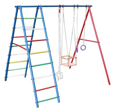 детский спортивный комплекс вертикаль а мини - спортивный комплекс, позволяющий приучать детишек к спорту с малых лет. конструкция разработана с учётом всех физиологических особенностей ребёнка. расстояние между перекладинами позволяет запросто дотянуться, забраться и спуститься с конструкции - и делать это крохотными детскими ручками.достоинства и особенности:комплекс устанавливается на улице путем бетонирования;приучает ребёнка к спорту с юных лет;совместим со спортивным инвентарем;разработан с учётом физиологических особенностей ребёнка.комплектация: канат, кольца, качели пластиковые, веревочная лестница, трапецияхарактеристики:способ установки: цементируются «стаканы»диаметр трубы: 40 ммтолщина металла: 1,5 ммдиаметр ступени: 25 ммширина ступени: 0,45 мшаг ступени: 0,26 мтип ступени: металлдопустимая нагрузка на навесное оборудование: 50 кгдопустимая нагрузка: 90 кг