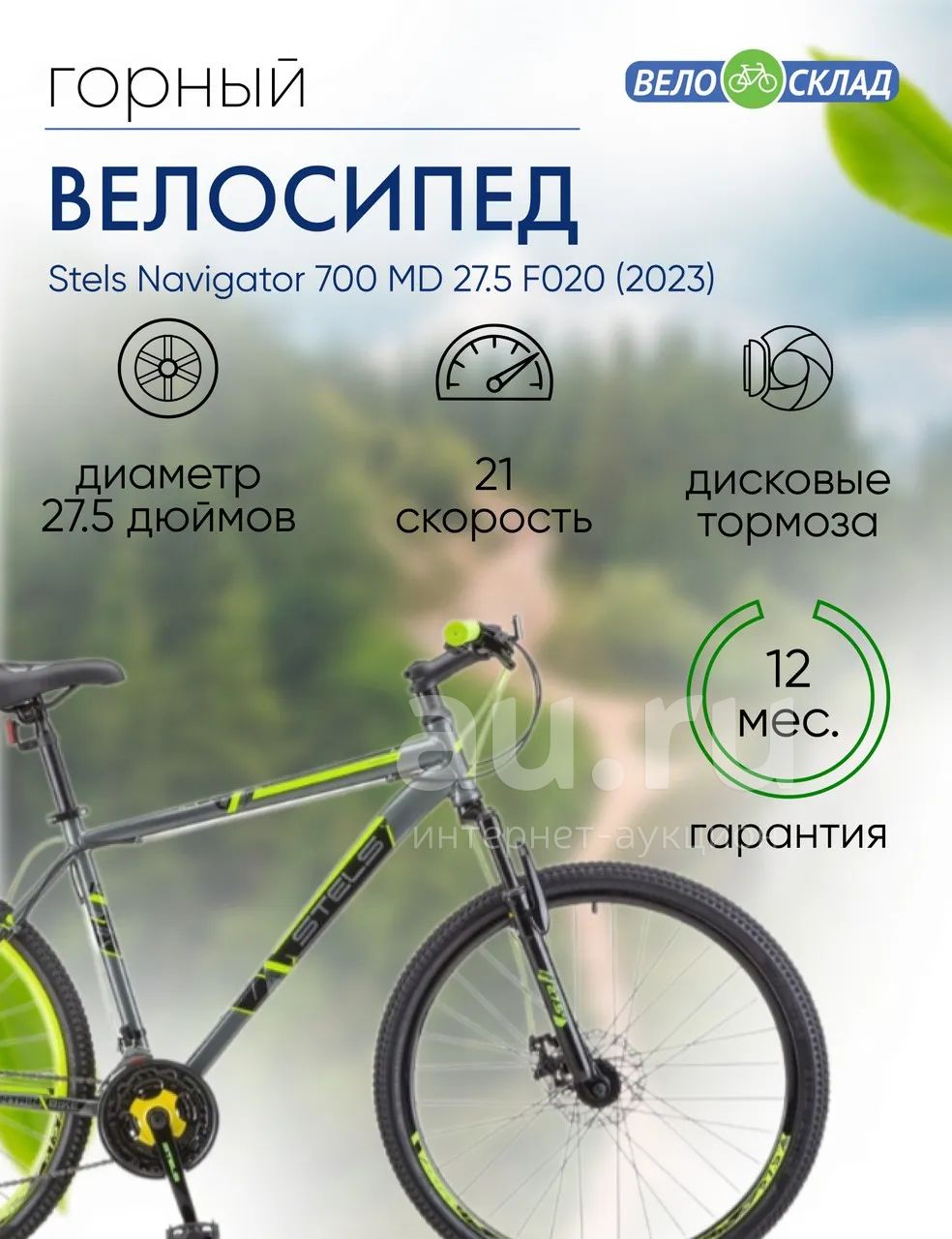 Горный велосипед Stels Navigator 700 MD 27.5 F020, год 2023, цвет Серебристый-Желтый, ростовка 21