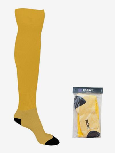 Профессиональные спортивные гетры Torres Sport Team. Модель отлично держит щитки, плотно облегает икроножные мышцы, обеспечивая компрессионный эффект и максимальный комфорт во время занятий. Гетры не сползают и не перекручиваются за счет двойной резинки, выполненной из смесовой пряжи с добавлением эластана. Носок из петельного хлопкового ворса со специальными вставками, которые исключают скольжение и обеспечивают дополнительную поддержку стопы. Модель связана из трикотажа, состоящего из волокон 68% полиэстера, 26% хлопка, 6% эластана. Такой состав придает ткани высокие эксплуатационные характеристики, она обладает высокой прочностью и отличной воздухопроницаемостью. Логотип Torres. Размер соответствует размеру обуви 35–38. Страна-производитель: Беларусь.