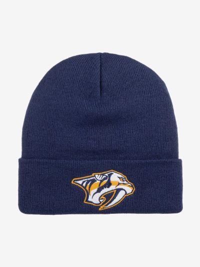 Американская бейсболка Nashville Predators из серии Blue Line. Бейсболка сшита из темно-синего хлопка. На передней панели вышит саблезубый тигр — эмблема хоккейного клуба "Нэшвилл Предаторз", созданного в 1998 году и играющего в НХЛ. Размер бейсболки регулируется с помощью текстильного ремешка с металлической пряжкой и кнопкой. Для вентиляции предусмотрены люверсы. Длина козырька 7 см, глубина бейсболки 11 см.
